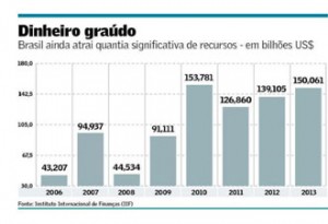 O fluxo de capital privado externo líquido para o Brasil poderá alcançar US$ 139 bilhões este ano, 9,7% a mais do que em 2011, conforme nova projeção do Instituto Internacional de Finanças (IIF), que representa os maiores bancos do mundo. A entidade aumentou a estimativa em US$ 2 bilhões em relação à projeção realizada em janeiro. A maior parte virá na forma de Investimentos Estrangeiros Diretos (IED), em volume calculado em US$ 58 bilhões.